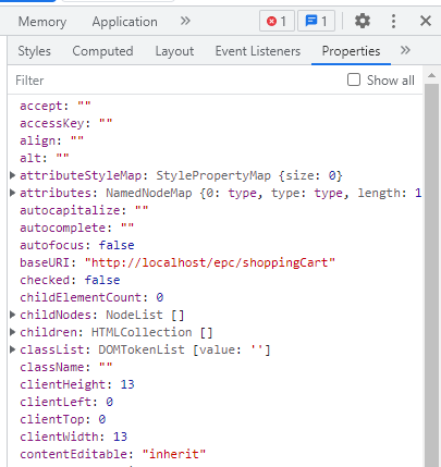 해당 요소가 어떤 속성값들을 갖는지,