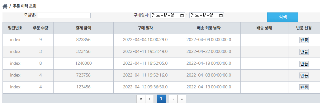 하지만 구매 일자에 아무 날짜도 넣지 않고 검색 버튼을 누르면